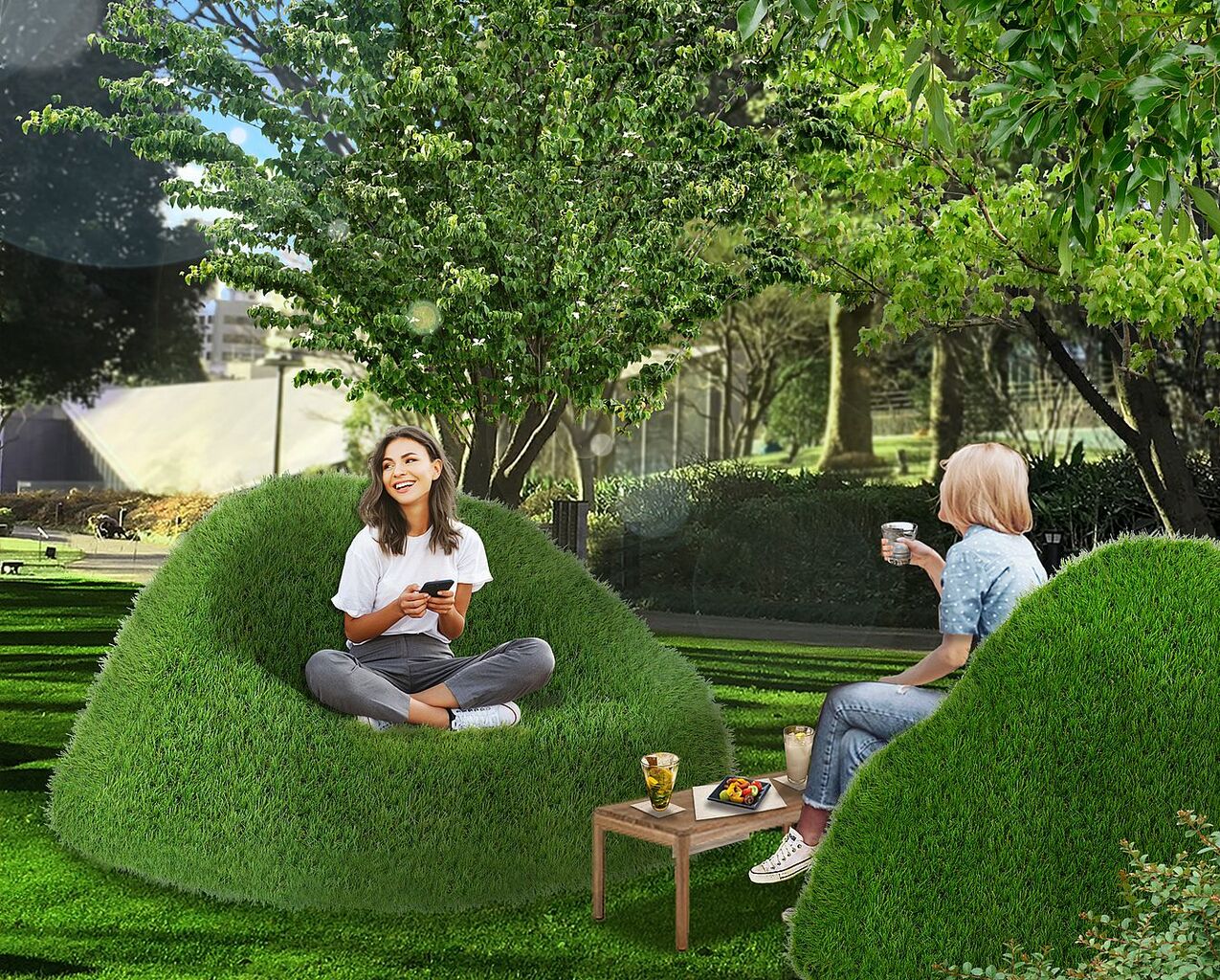 ふかふかの芝生ソファに
