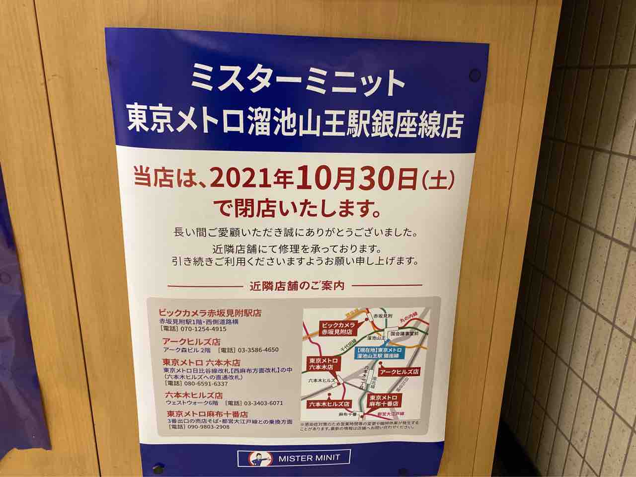 店 名:MISTER MINIT 東京メトロ 溜池山王駅 銀座線(ミスターミニット)