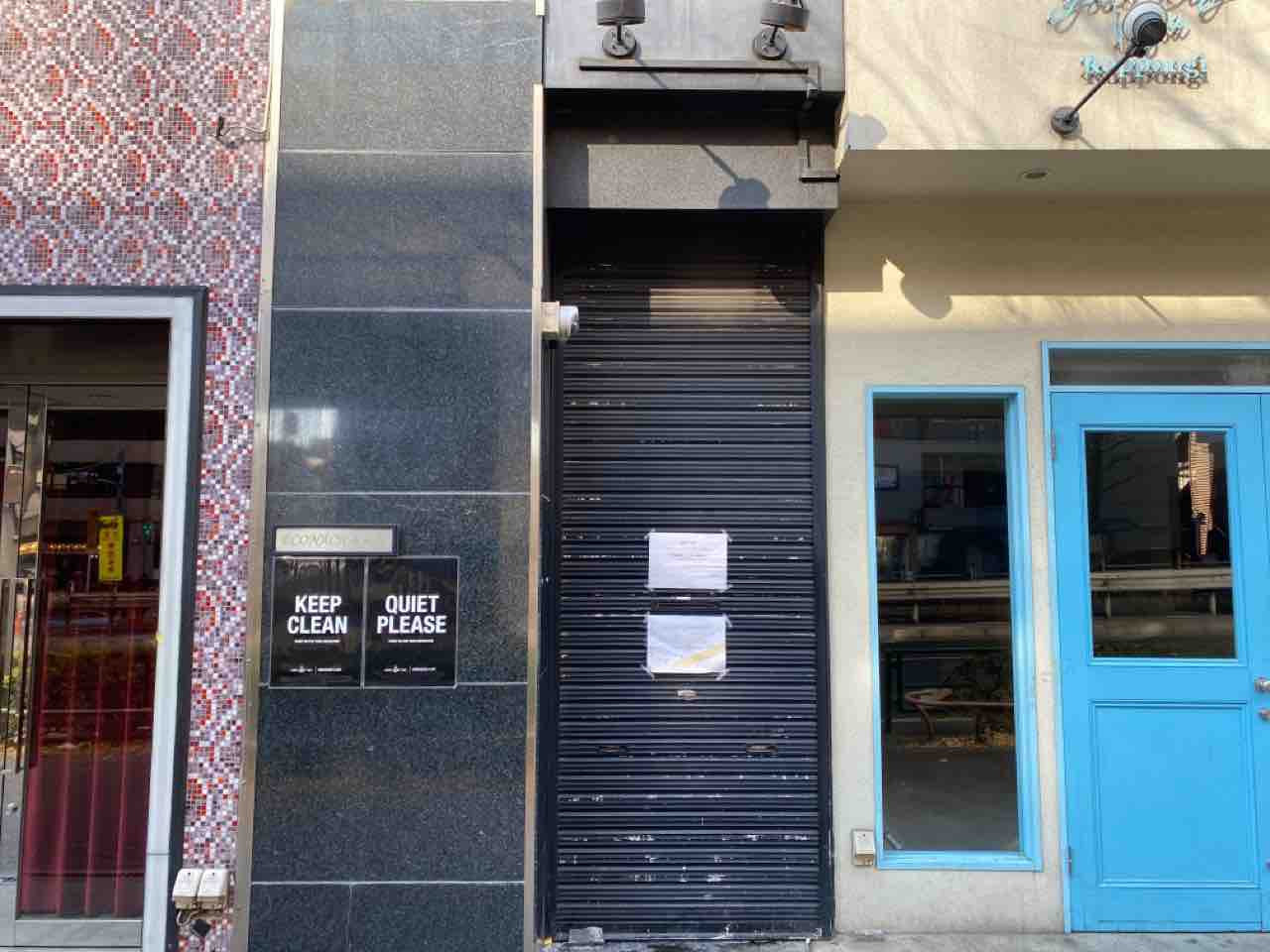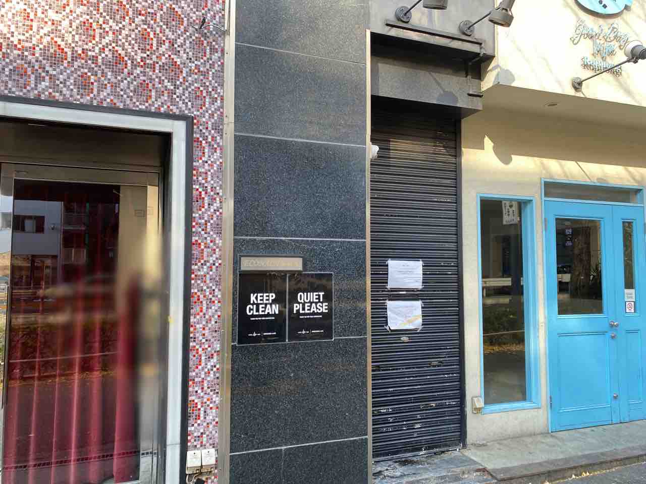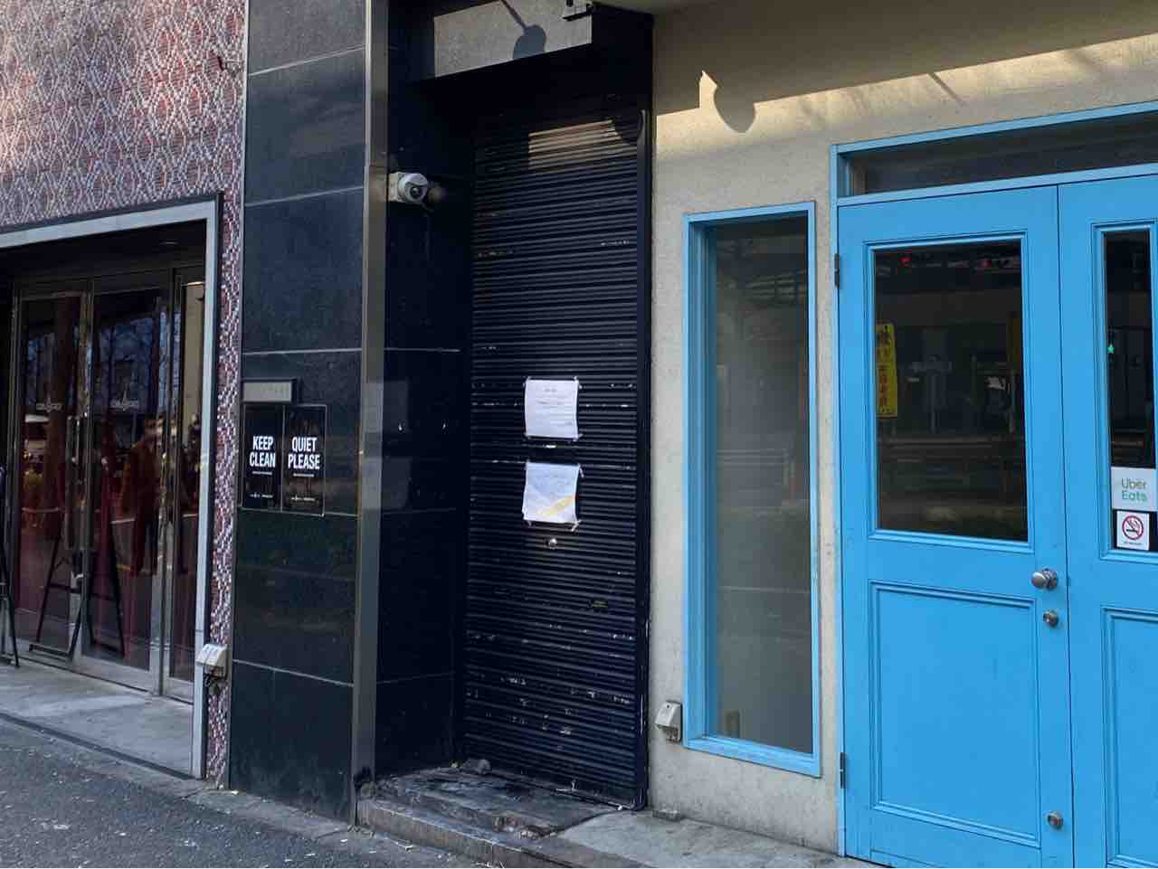 シャッターに移転先の住所あるね…