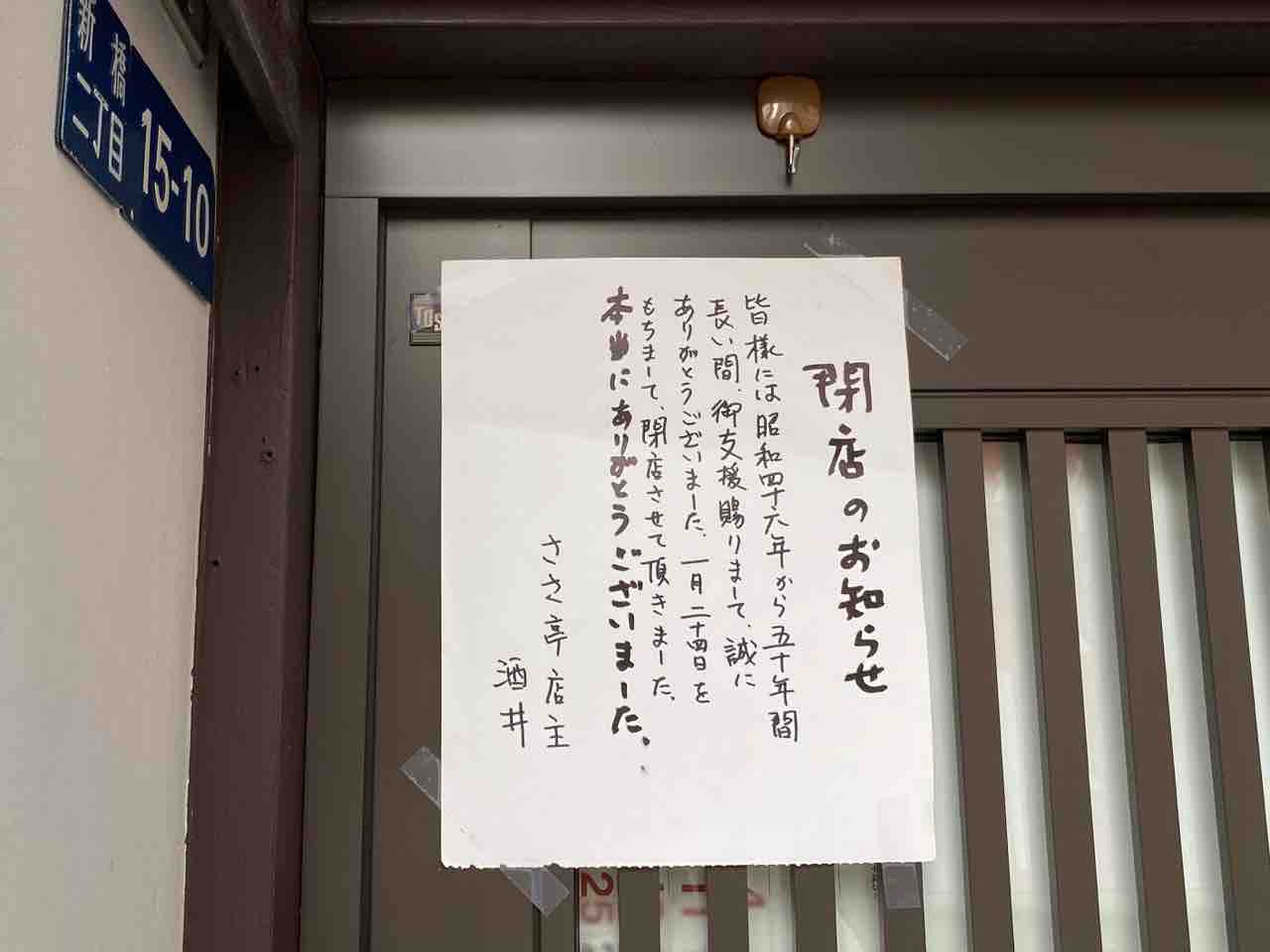 「新橋のささ亭閉店したって…」