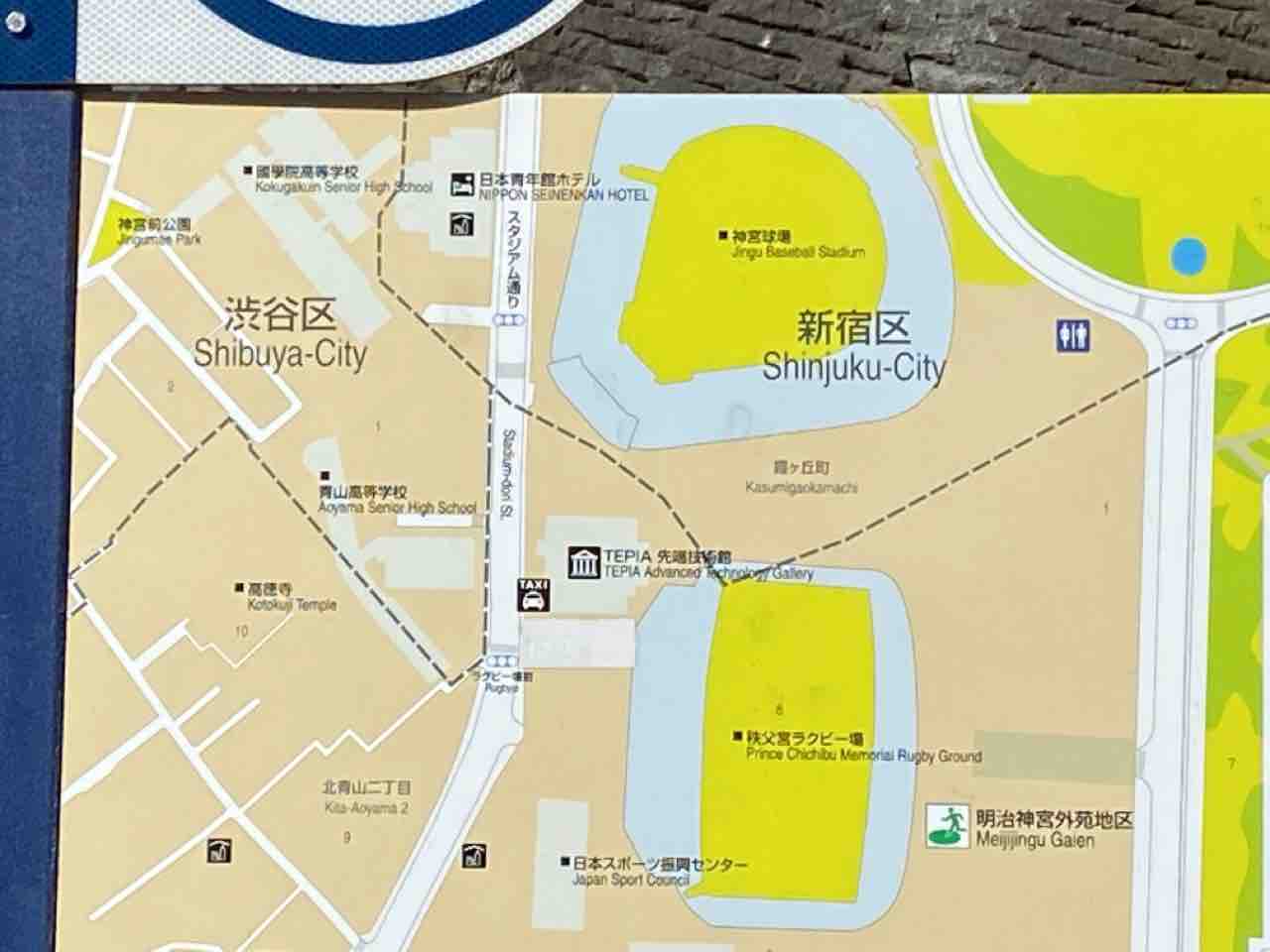 『明治神宮球場』側が新宿区、