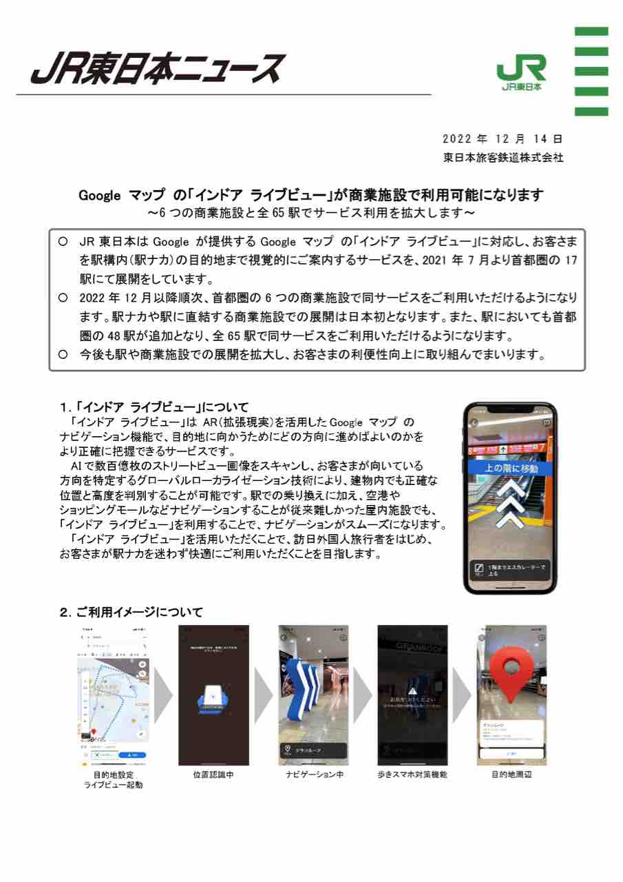 ※「インドア ライブビュー」サービス利用拡大についての詳細は、こちら。