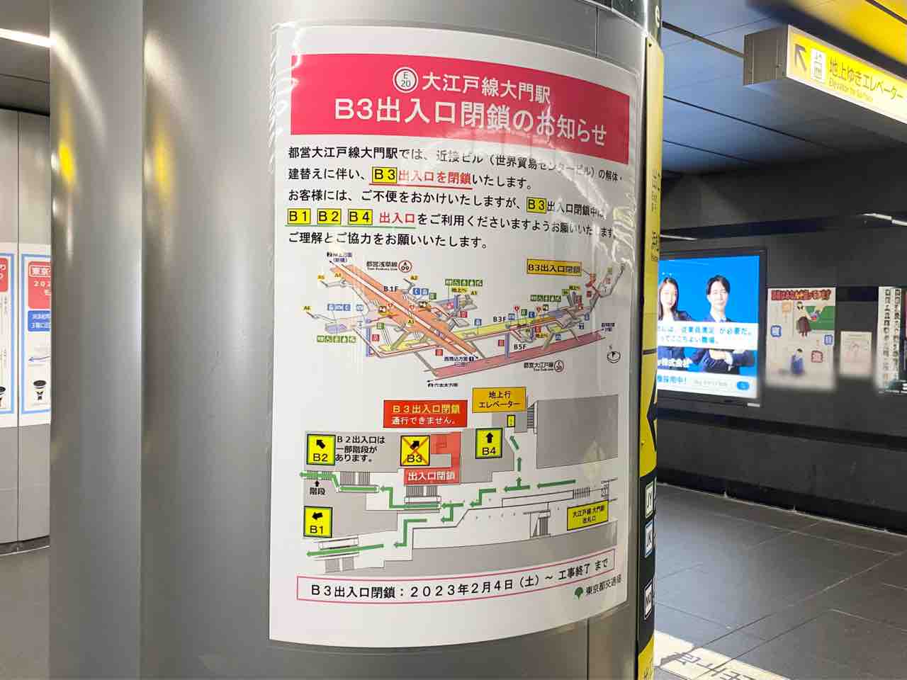 ※大江戸線大門駅B3出入口閉鎖についての詳細は、こちら。