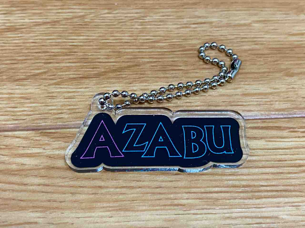 の、ロゴのキーホルダー。笑