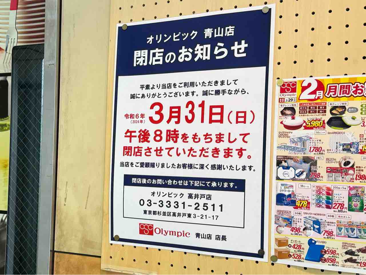 3月31日をもって閉店。